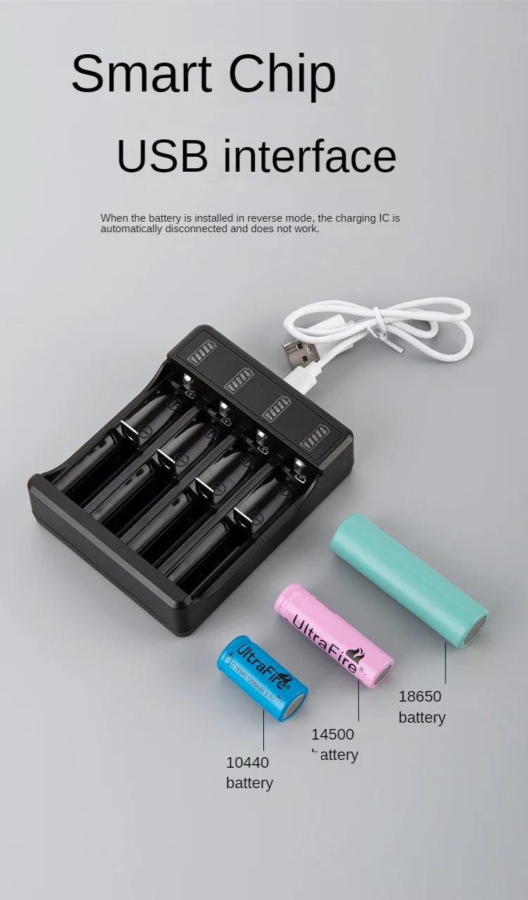 Compatible batteries: 18650 10400 14500 16340 16650 14650 18350 18500 etc. rechargeable lithium batteries